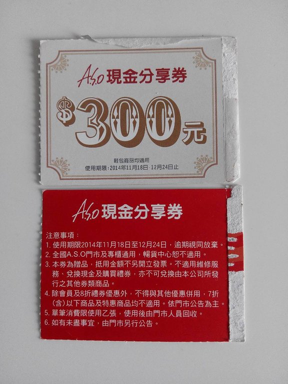 [免費送人] Aso ntd 300現金分享券,免費送人請自取