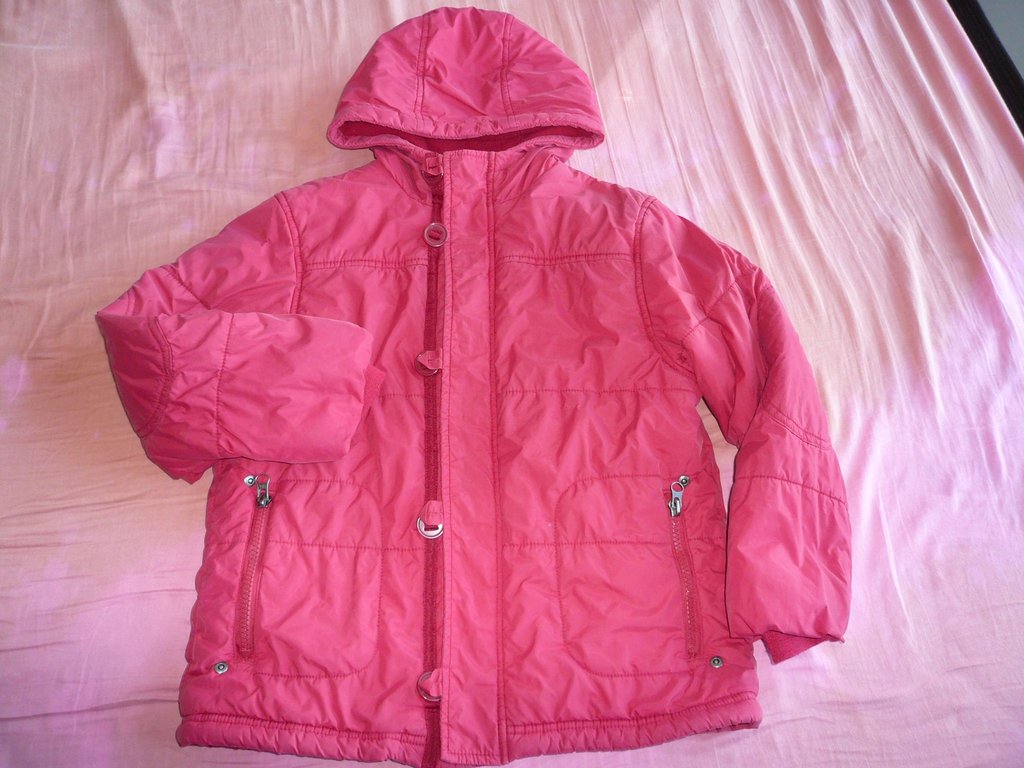 1.Bossini 防風內刷毛保暖連帽外套-120cm.這件也是從105cm就能開始穿.我家姊姊穿了兩季.很保暖好穿.也很好搭配.因為經常穿洗,所以胸前本來有一個logo已經洗掉了.其他沒有很明顯髒汙.就是因為紅色所以車線邊緣會覺得好像有點洗白感.衣況如圖.顏色不如新品亮麗.不過穿出去還是ok.