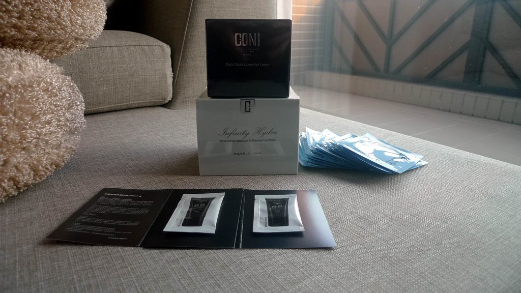 Coni 黑鑽眼霜 15ml,另贈送Coni 眼膜散裝 6份,與BB霜試用品一小包,1300元.