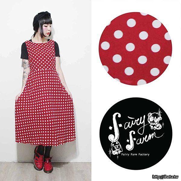 [二手買賣] {Fairy Farm Factory(Vintage)紅色底米妮白點點波浪裙擺背心洋裝} |
