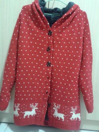 [二手買賣] 亮紅色麋鹿長版針織外套~內有刷毛 (美國品牌) |