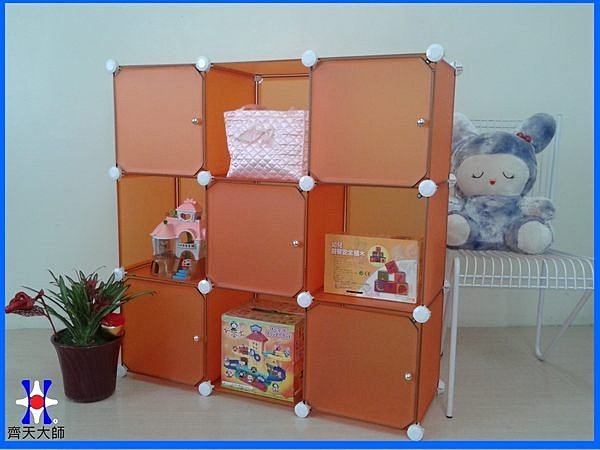 [二手買賣] (已售出.謝謝)9格9門DIY組合櫃_白底橘色的門.附門把.8成新 |