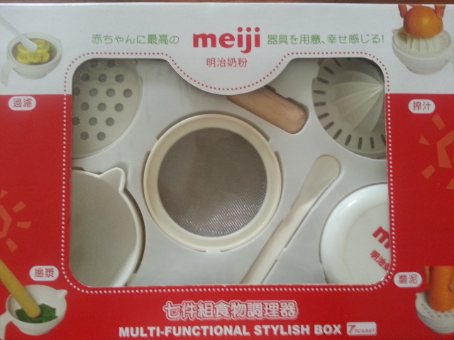 七件組:研磨杯,榨汁器,搗物杯,濾網,杯蓋(盤),搗碎器,幼兒匙