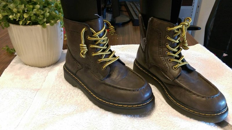 皮革柔軟 咖啡色皮面+黃色及棕色混搭鞋帶 整個帥氣到不行喔