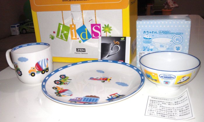 [二手買賣] 已售出~全新小汽車兒童餐具組(韓HK+日製汽車宇宙陶瓷碗)