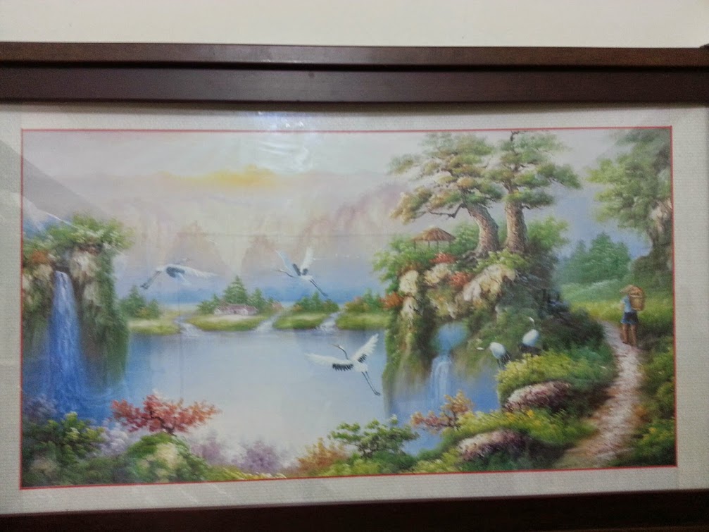 這幅畫的玻璃會反光,所以我拍斜的~才能看到畫面~