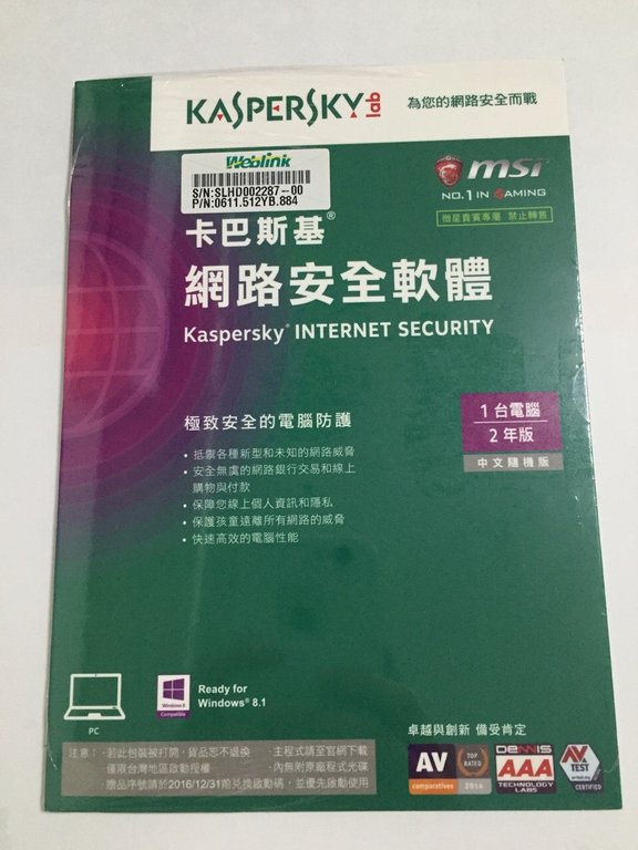 [二手買賣] 卡巴斯基 一台2年版 網路安全2015~2016年底前開啟,已賣出 |