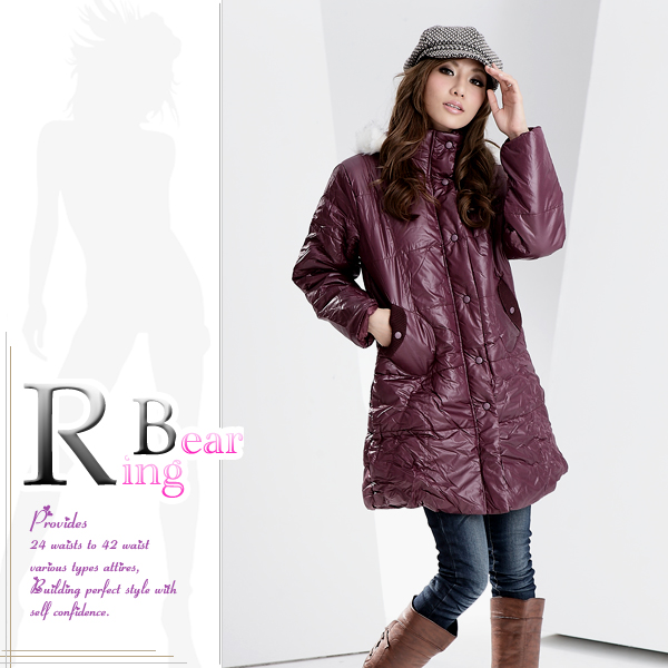 [二手買賣] 大尺碼 腰身剪裁鋪棉連帽毛邊素面長外套 |