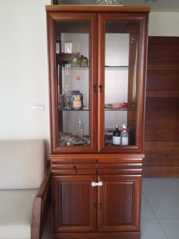 [二手買賣] 實木玻璃展示客廳書房櫃子(大)81.5×48.5×202公分