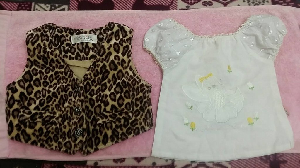 [二手買賣] 一歲女童粉紅長褲 豹紋背心 白色上衣 |