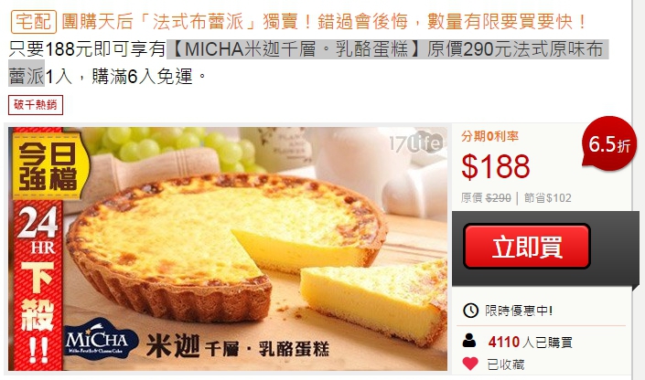 [二手買賣] 現貨分購 【MICHA米迦千層。乳酪蛋糕】法式原味布蕾派 |