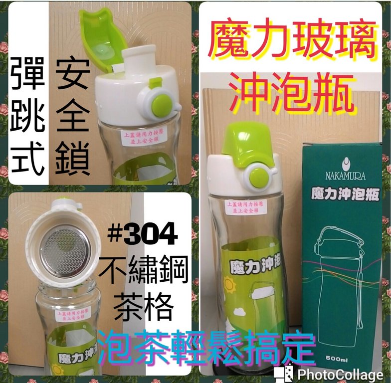 [二手買賣] 全新-500ml玻璃魔力彈跳沖泡瓶(含安全鎖+304不繡鋼濾網)