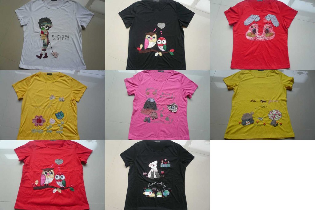 由於每一件尺寸只有一個.XL有白色跟黃色蜜蜂款(這件背面袖子稍有淺汙如圖,這件賣60).其他都是L.一件只要80.要買要快.粉色那件背面還有圖樣.都很可愛.2件150.