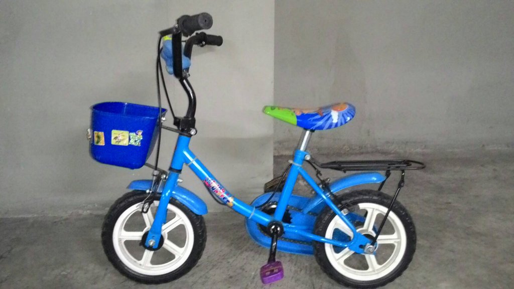 二手12吋兒童腳踏車,前面車籃有貼紙痕跡,腳踏板之前拆掉再裝回去時找不到一對的,所以是一邊紫一邊黑,有興趣者可以約北大特區面交.