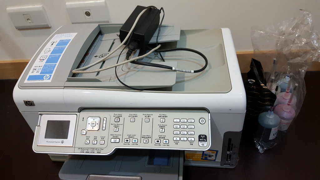 傳真,列印,掃描,無線, 影印,彩色相片,彩色銀幕,再加上補充墨水(全部9成滿,當初5年前機器購買1萬元,墨水7500以上)。全部功能正常,也有usb,6個記憶卡讀取。