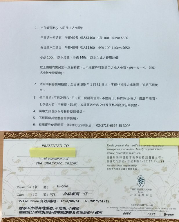 [二手買賣] 代PO 台北西華飯店B-one自助餐 買一送一餐券 <已售> |