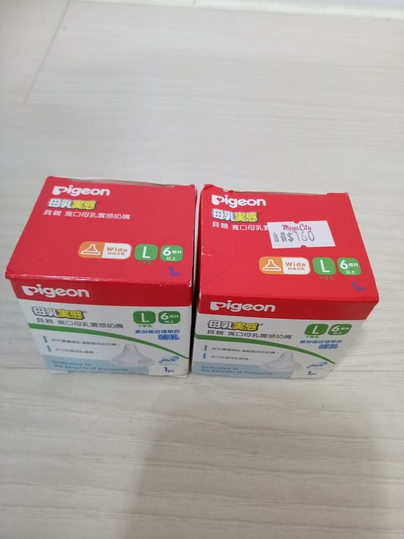 [二手買賣] 全新Pigeon 貝親寛口奶嘴,尺寸:L ! 2個只要200元!