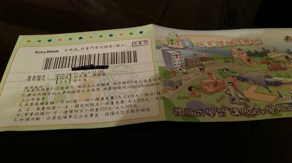 有一張兒童免費的入埸卷...因為沒時間去....所以售出...