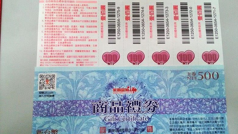 [二手買賣] 萊爾富禮券五百元面額x2(已售出) 比漾廣場300禮券x1 |