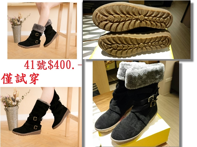 [二手買賣] 可翻折絨毛中筒雪靴-黑色41號-僅試穿
