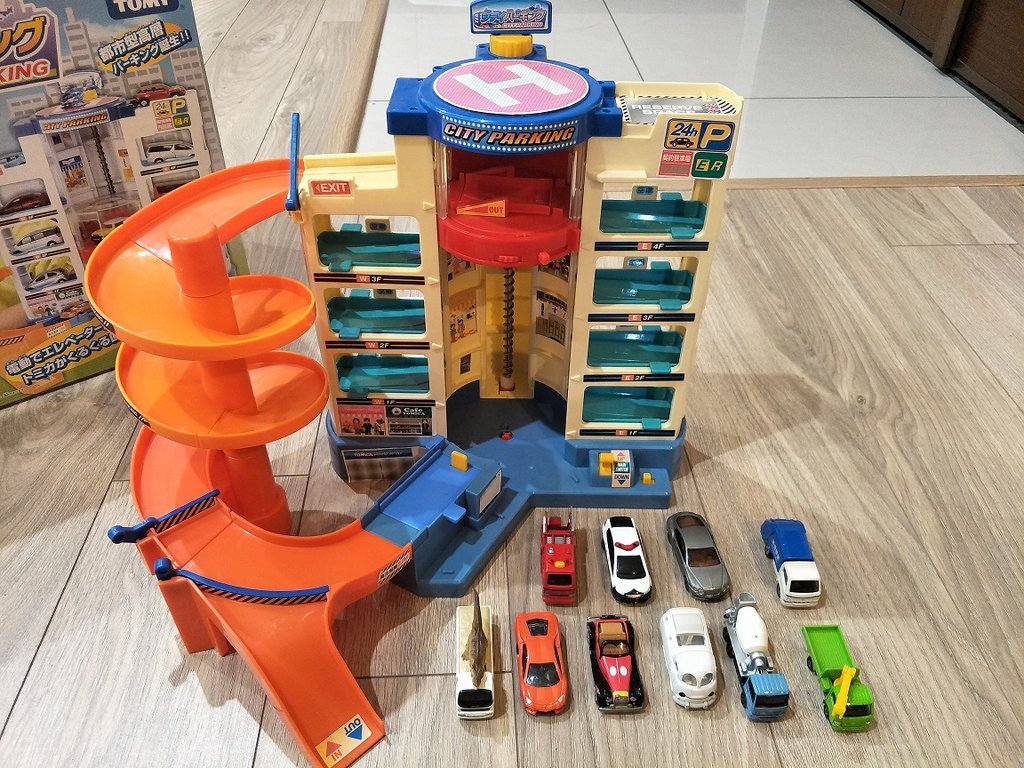 [二手買賣] (已售出)多美TOMICA汽車停車塔加十台多美小汽車 |