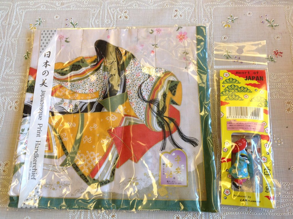 [二手買賣] 全新 日本製手帕+藝妓吊飾