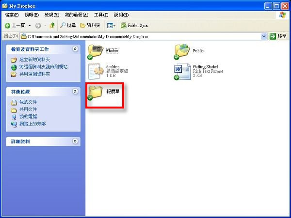 在安裝完畢後在我的文件終究會多出一個Dropbox的路徑:$ O' R s, J4 F# M" i9 w% ~