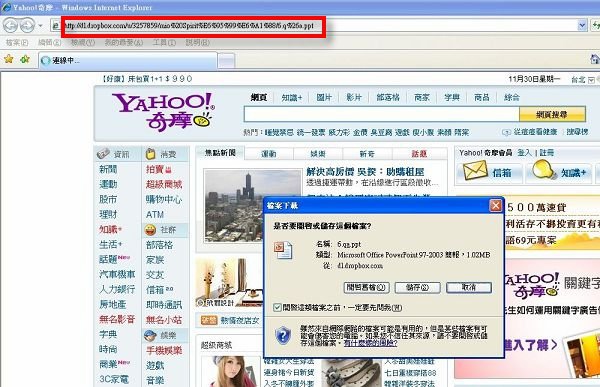 ▲然後就可以將該連接MAIL給朋友或貼在網頁中就可以直接下載該檔案!+ J8 F$ Q/ t$ M) f" t- h