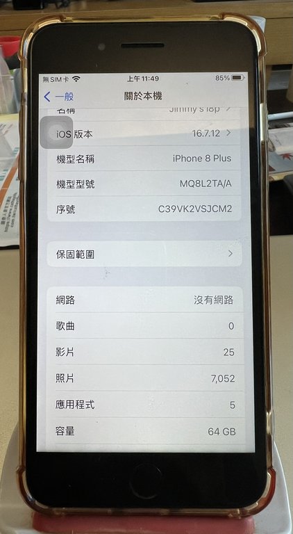 出售iPhone 8 Plus 64GB手機一支,目前版本為16.7.12,換過副廠電池,電池健康度維持在100%,無待修,退役前都玩些小遊戲及瀏覽網站等,去年有換過螢幕總成,目前使用都正常。