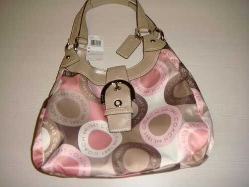 [二手買賣] COACH 春夏新款 COACH 圓形 Logo扣環裝飾三層肩背包-粉紅色 |