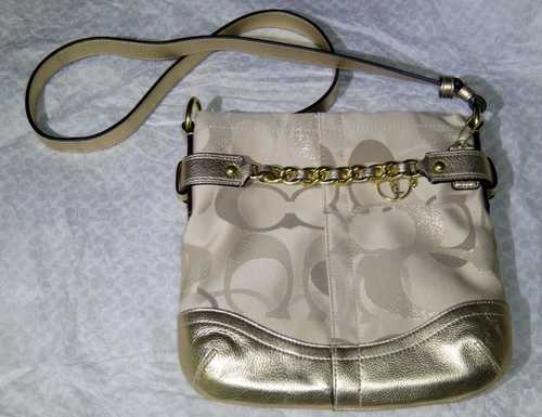 [二手買賣] COACH 織布鍊帶金色皮革滾邊肩背包 |