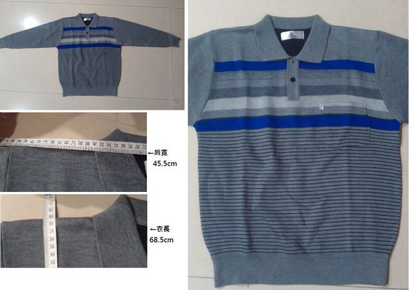 [二手買賣] 厚棉長袖POLO衫 藍灰白條紋 L號