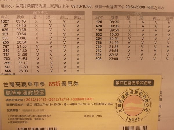 [免費送人] 2012/10/15~2012/12/14 高鐵85優惠劵 |