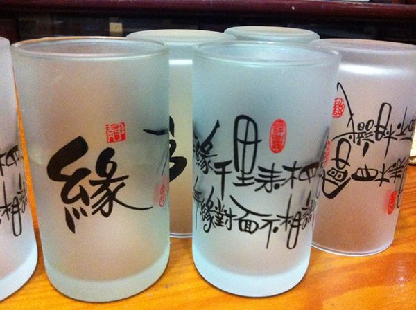 有緣千里來相會提字玻璃杯一組(8個) 今天整理時又找到2個未使用