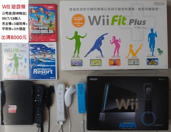 [二手買賣] WII 主機(黑)+3組手把+3片遊戲片+平衡墊 出清8000 極少使用 |