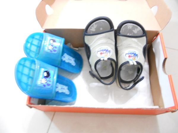 是阿~可以嗎? 因為我家小孩剛好可以穿!!如果不能拿兩雙的話...那麻煩你給我涼鞋囉^^ 我在私訊給你電話姓名~明天去拿感謝囉!!