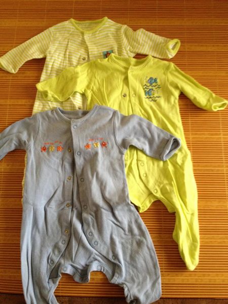 以上3件Mothercare 0~3M 長袖包腳衣, 100元/件
