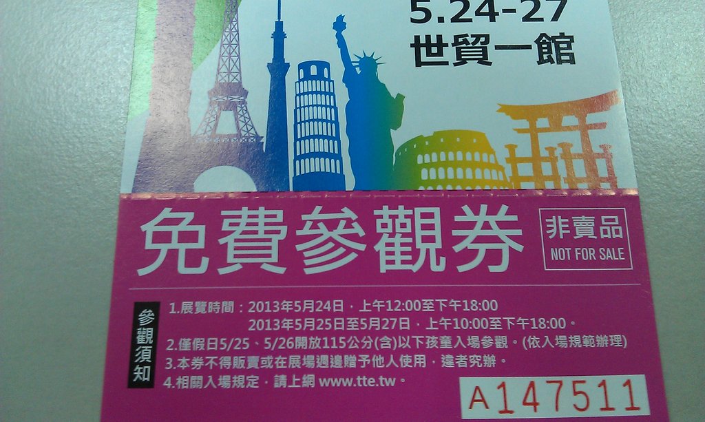 [免費送人] 2013國際旅遊展 免費參觀卷 (5.24~5.27) |