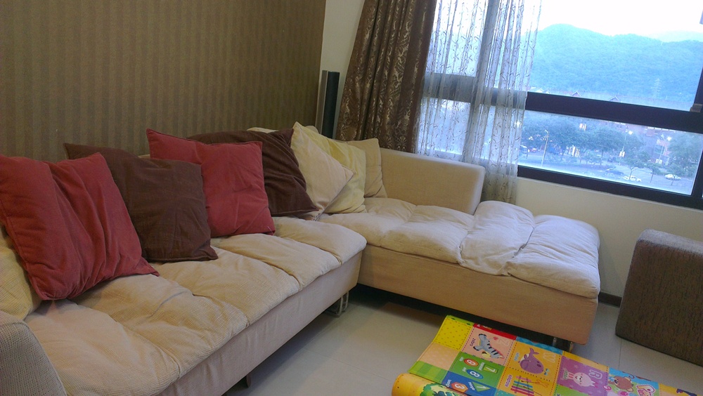 [二手買賣] 溫馨沙發L型沙發(含9個抱枕)~~只要3000元 |