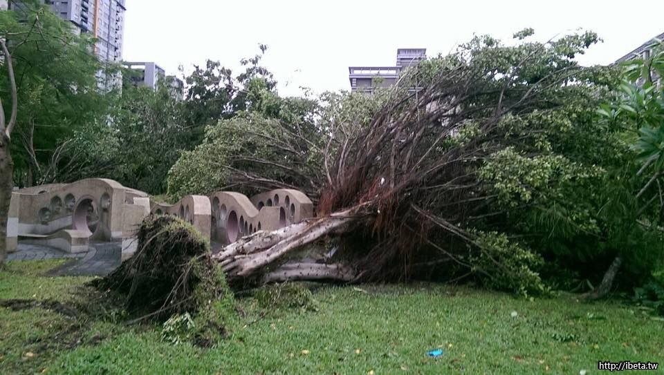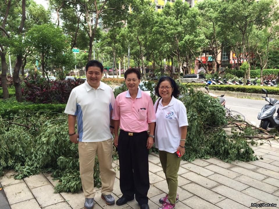 8/8 颱風造成北大很多行動樹倒楣,例如學勤路大學劍橋社區右側有兩棵樟樹已傾斜,是否盡快請區公 ...