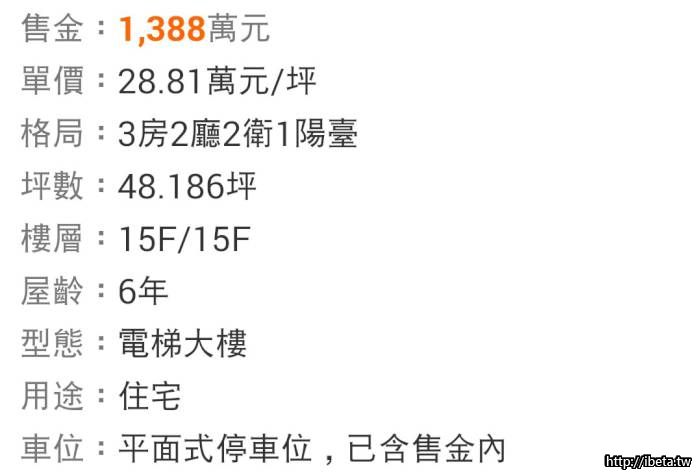 北美館三房1390萬 31萬/坪