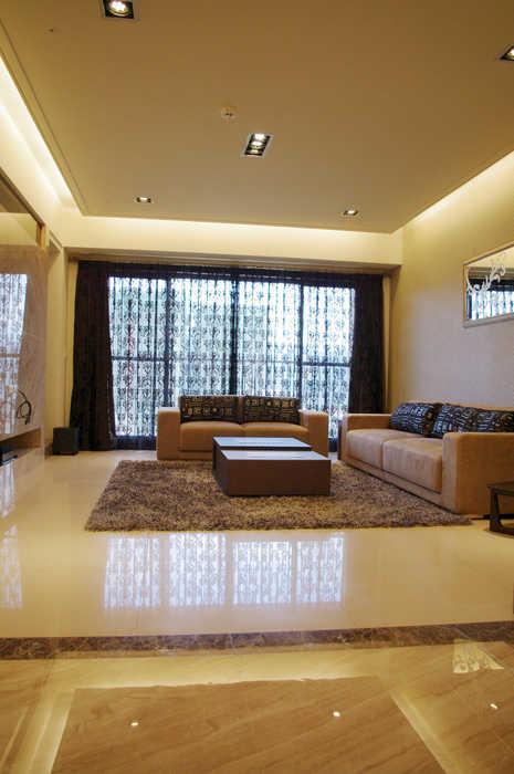 複習一下那雅緻亮麗又大器的客廳(注意玄關的帝諾石材與電視牆皆有細緻的對花)