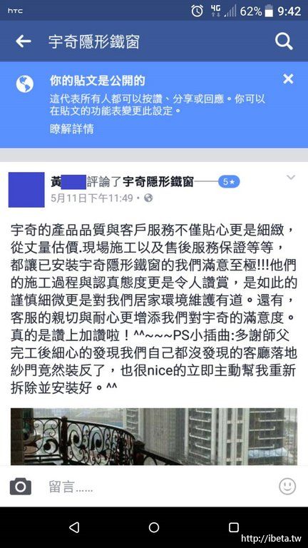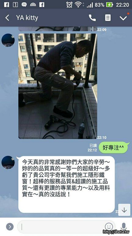 Junsun 發表於 2018-5-8 11:57 感謝宇奇隱形鐵窗(魏小姐)的快速及品質,讓我在很趕的時間,5/2詢問,馬上就來家裡幫忙丈量。5/4就來施工。 ...