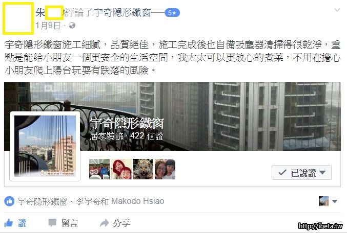 陳辛弟 發表於 2016-10-22 23:34 之前在Y拍找到这家隱形鐵窗,原本抱著比價心態請專員來估價,没想到來了一位小姐。認真细心的態度讓我當下 ...