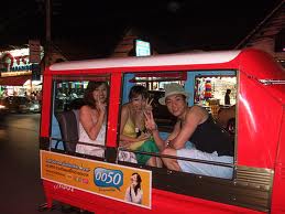 比高爾夫球車大一點的那種電動車, 隨招隨停, 安全無虞情況下, 部分司機來源為徵求在地義工行駛.....