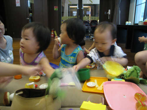 妳們看每張沒被碰到的玩具都很清楚(最後一張的高麗菜看起來多好吃啊~~~), 如果是相機或拍的人晃動, 所有的都會不清楚~