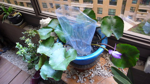 荷竹 發表於 2011-11-9 12:03 再買一隻鬥魚,居然產卵了,卵藏在水泡下,睡蓮花雖小,姿色還是很美滴