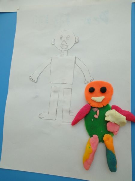 這黏土讓這些小人可真安靜許久....切切切~揉揉揉~作一個身體來!