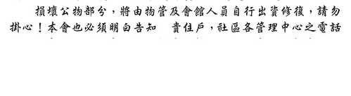 黑麻麻 發表於 2012-2-8 09:07 我寫在世紀館了 主委不管的話,就看家族怎麼回 再不行,我會寫到公寓大廈管理管委會去投訴