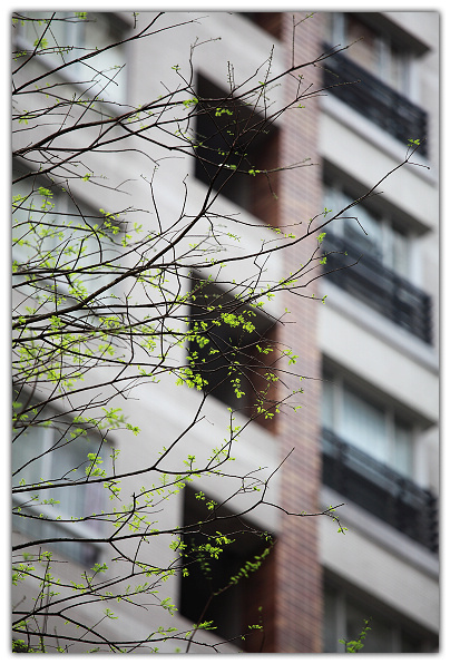 中庭的嫩楓葉。